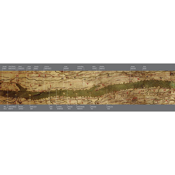 The map which illustrates this best is the famous Tabula Peutingeriana (the Peutinger Map) – a unique road map, itinerarium, which shows the road network of the Roman Empire.